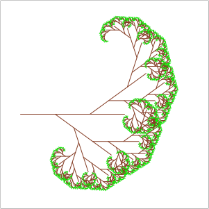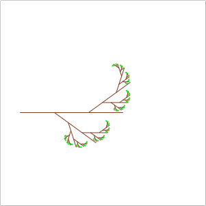 Otherwise the function puts a brown line at x/y/ang/len, and recursivaly calls itself twice: once with x/y placed one third up the trunk at an angle off to the left, and another with x/y placed two thirds up the trunk at an angle off to the right. The length should be cut in half... altogether something like: