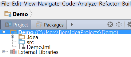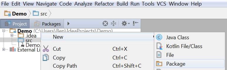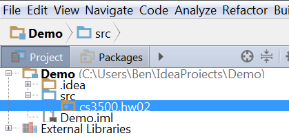 directory is marked blue, which means IntelliJ believes that this directory contains the source files of your project. To create a new package, right-click on thesrc