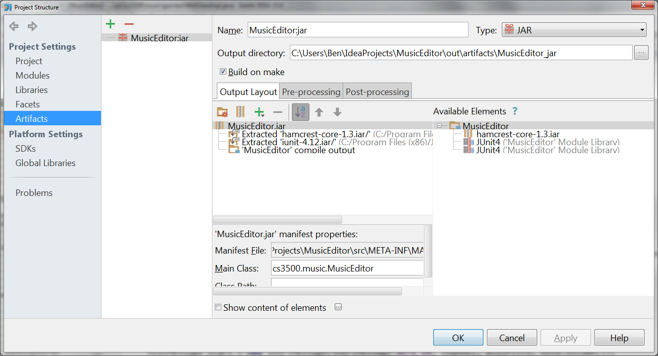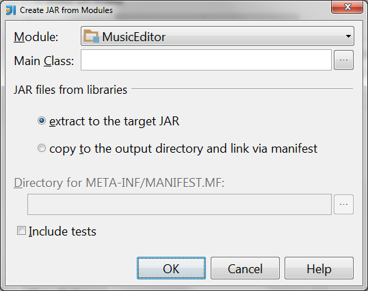 .Verify that your jar file works. To do this, copy the jar file and your music files to a common folder. Now open a command-prompt/terminal and navigate to that folder. Now type
