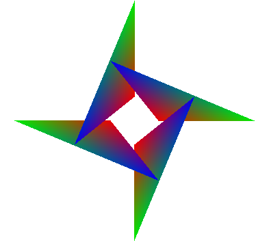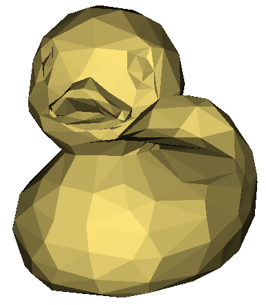 Write a program that satisfies all requirements of HW4 Part III, but that also implements depth sorting. You should be able to turn depth sorting on and off, so that you can produce renderings that look like both the left and right duck images above. Your depth sorting program should also have the same failure modes as shown in the example images below for the overlapping and intersecting input files.
