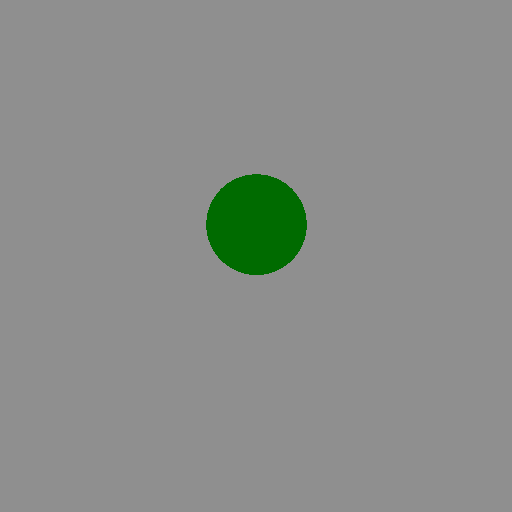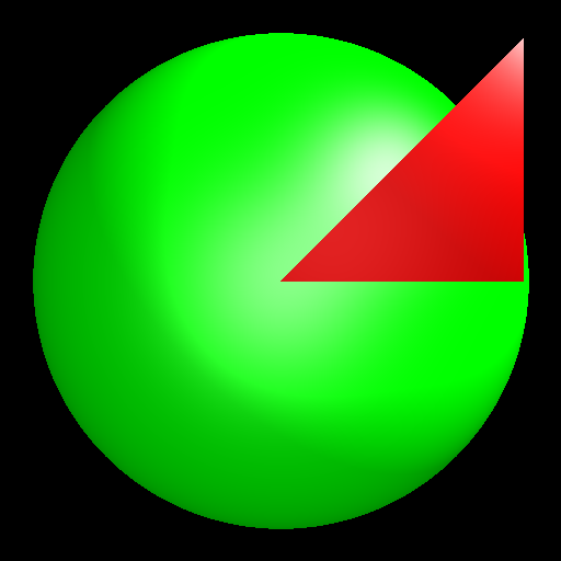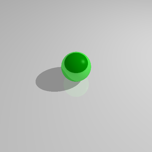 For debugging your program, it is good to start with a very simple scene. This scene includes a single green sphere, a point light, and a white “ground” plane. By editing the settings line in the file you can turn on/off mirror reflections, shadows, specular, and diffuse lighting. You can also comment out the ss and ps lines to enable or disable the sphere or plane surfaces, respectively. Here is what you should expect your program to render in various cases (all of these images are 512x512 and took about 1–2s each to render using the solution code, but during debugging you might want to use a much smaller canvas size to reduce rendering time):