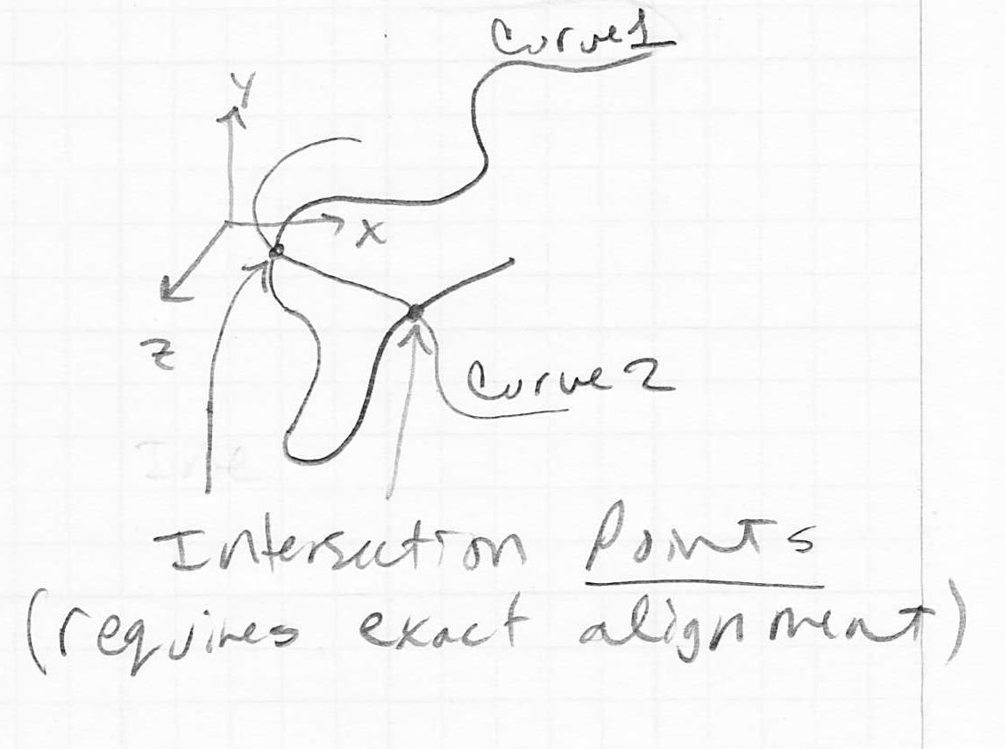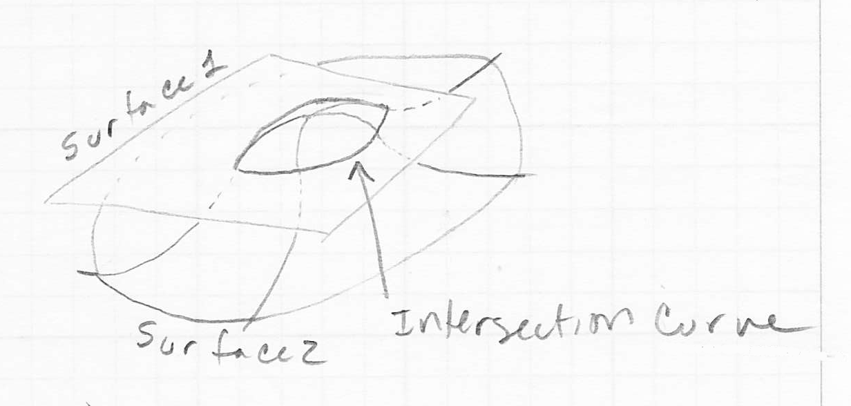 - the intersection of two surfaces is generally one or more curves