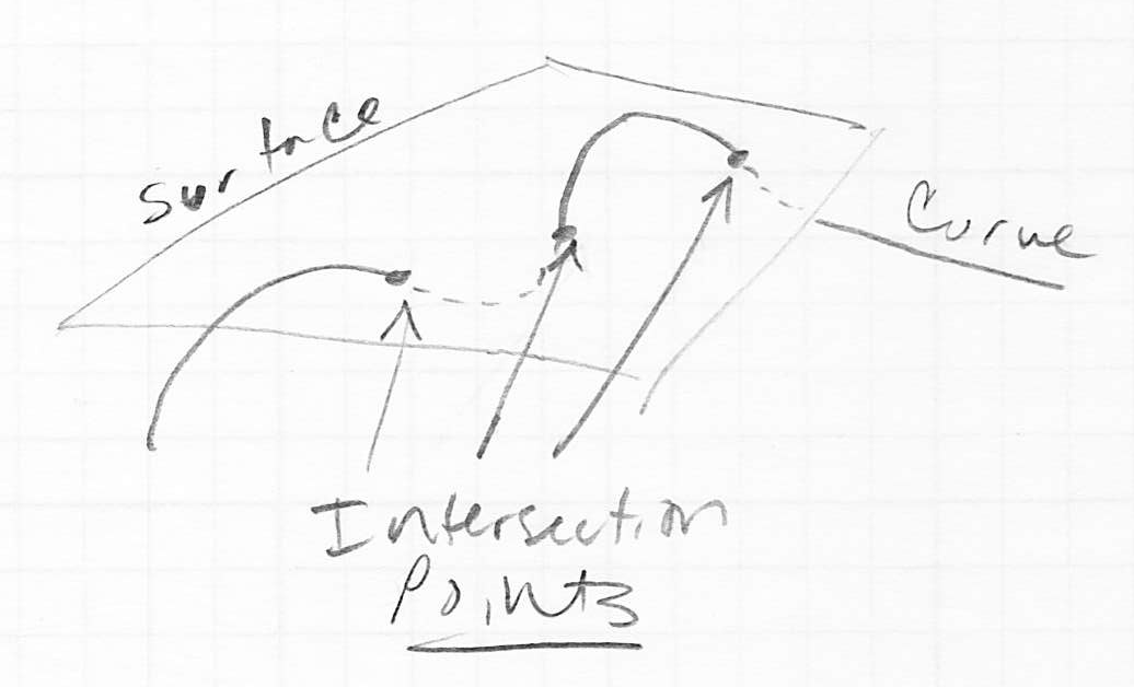 - the intersection of a curve and a surface is generally one or more points