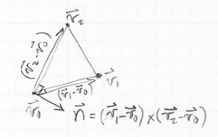 , the normal to the plane containing the triangle - compute