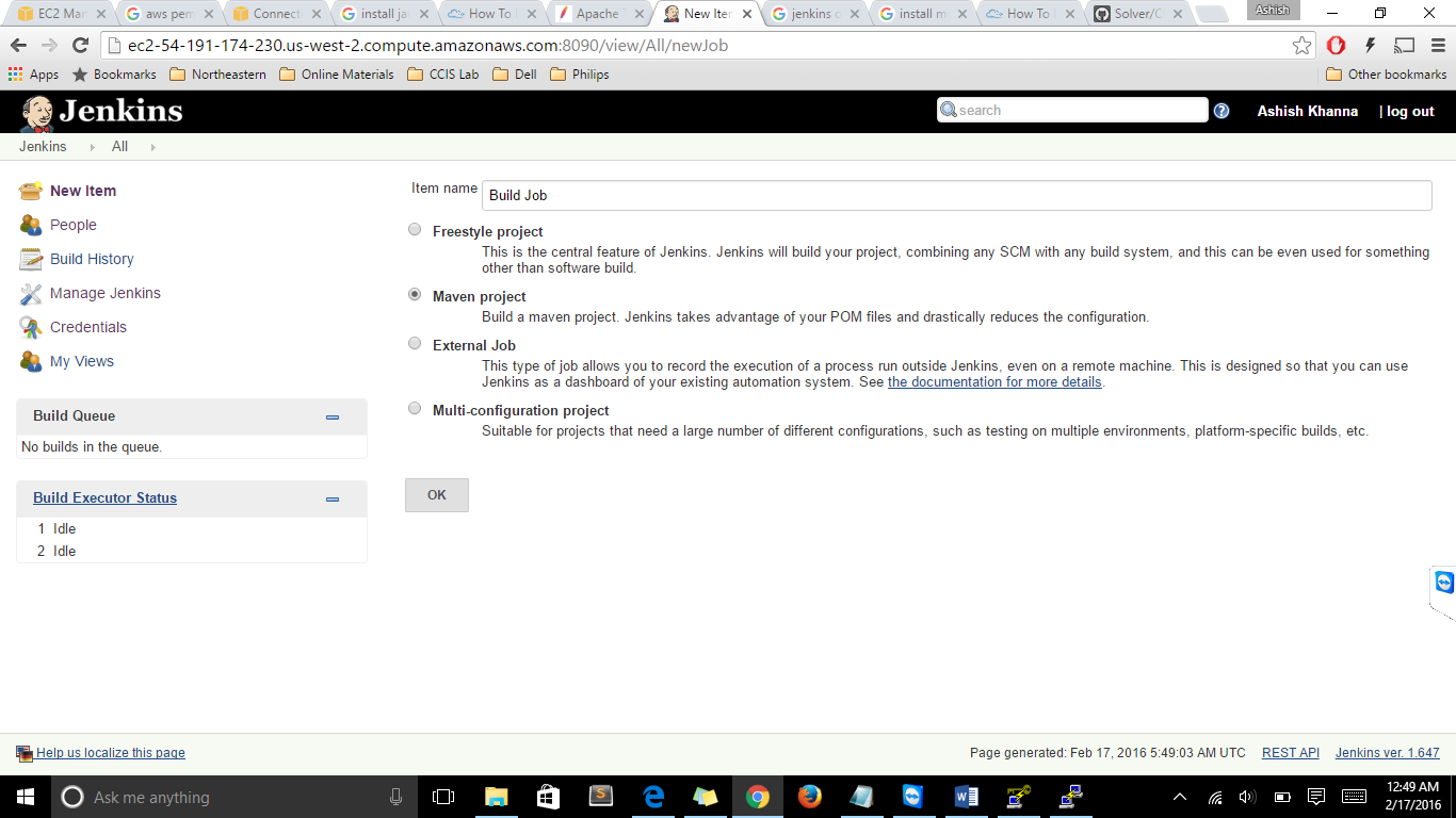 First, to create a new Item, click on New Item. Next, enter a name for the Item Name. Finally, select Maven project. If you want to do something other than Maven, feel free to experiment with other options. Hit OK.