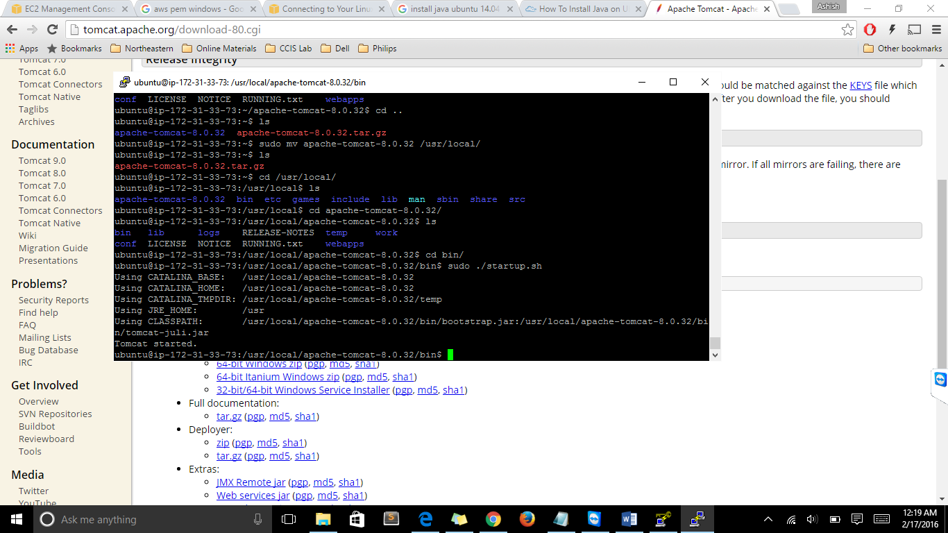 prompt> sudo mv apache-tomcat-8.0.32 /usr/local/