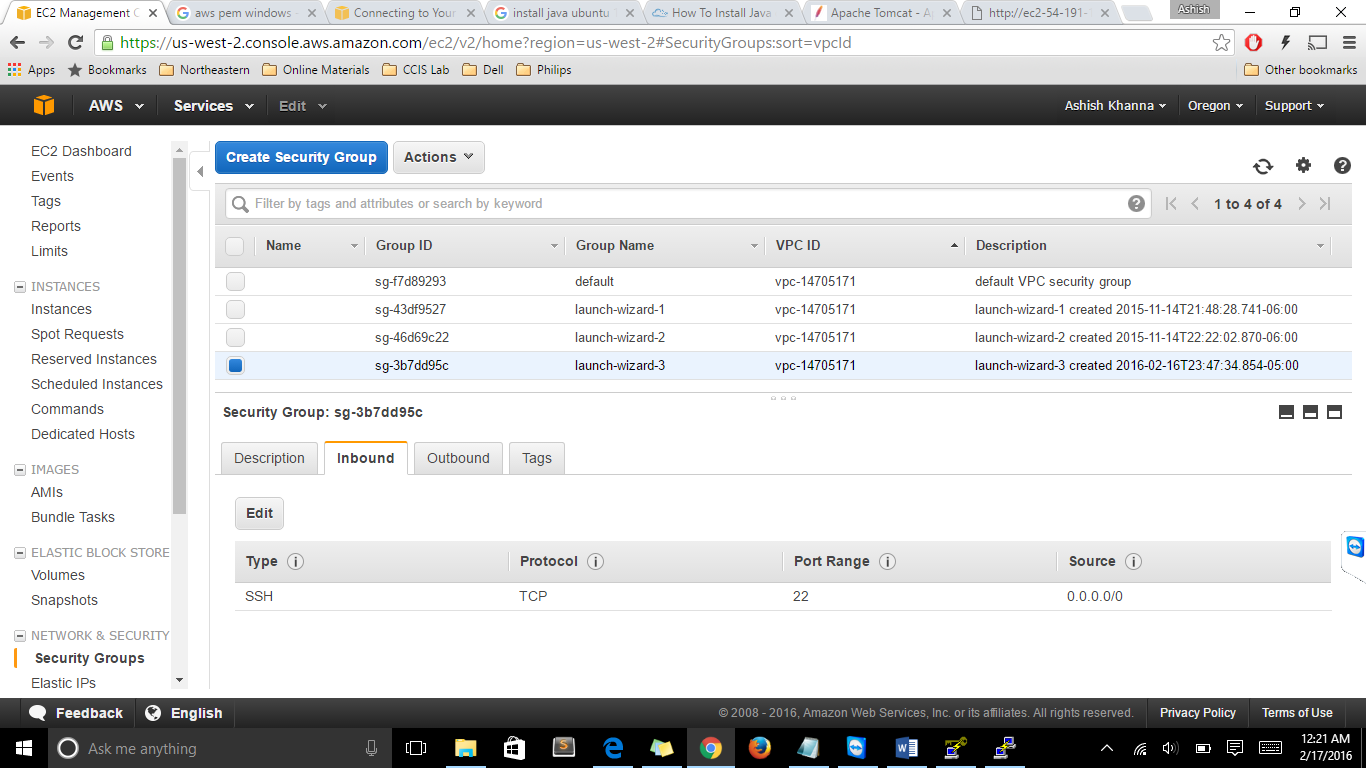 You will need to open ports for communications on your instance. We will chose to open port 8080 for tomcat and 8090 for Jenkins - you can actually choose any numbers for your ports, but 8080 and 8090 are standards for tomcat and Jenkins respectively. We recommend you stick to these standards.
