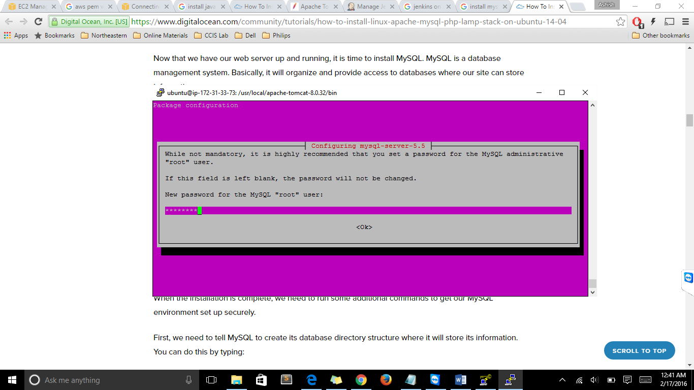 mySQL will run on port 3306. This should be set up as part of the mySQL installation.