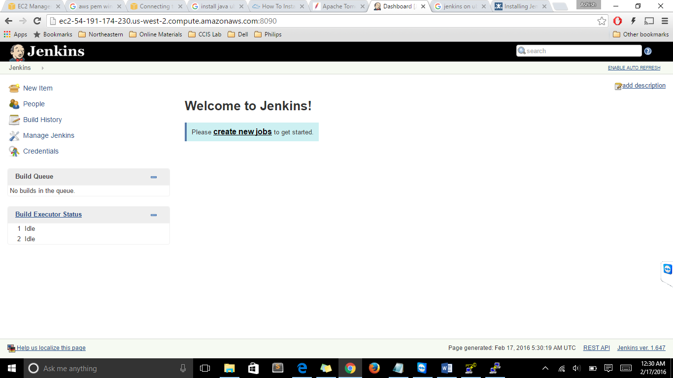 Now if you use a browser to go to your instance's public DNS name putting :8090 at the url's end, you should see Jenkins running.